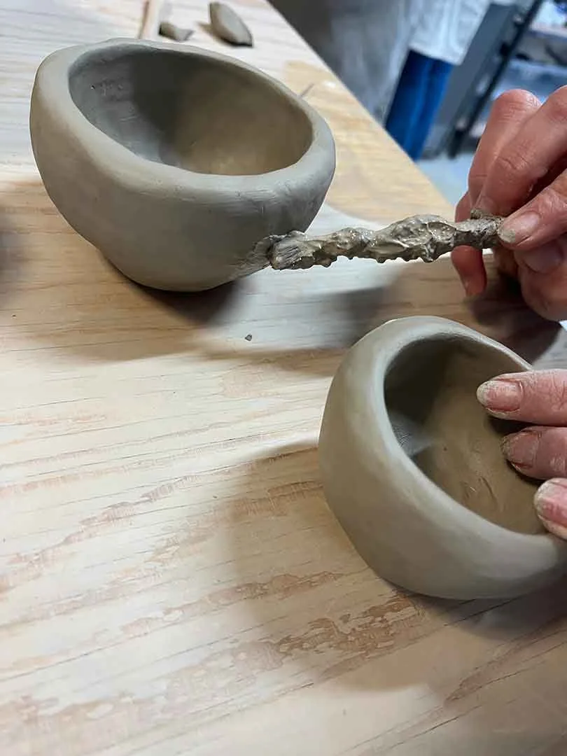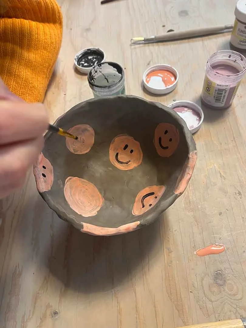 Ik leer je hoe je met verschillende technieken zonder draaischijf een kom of tas kan maken. Na het opbouwen hebben jullie even pauze en kunnen de werken al wat drogen om daarna beschilderd te worden.