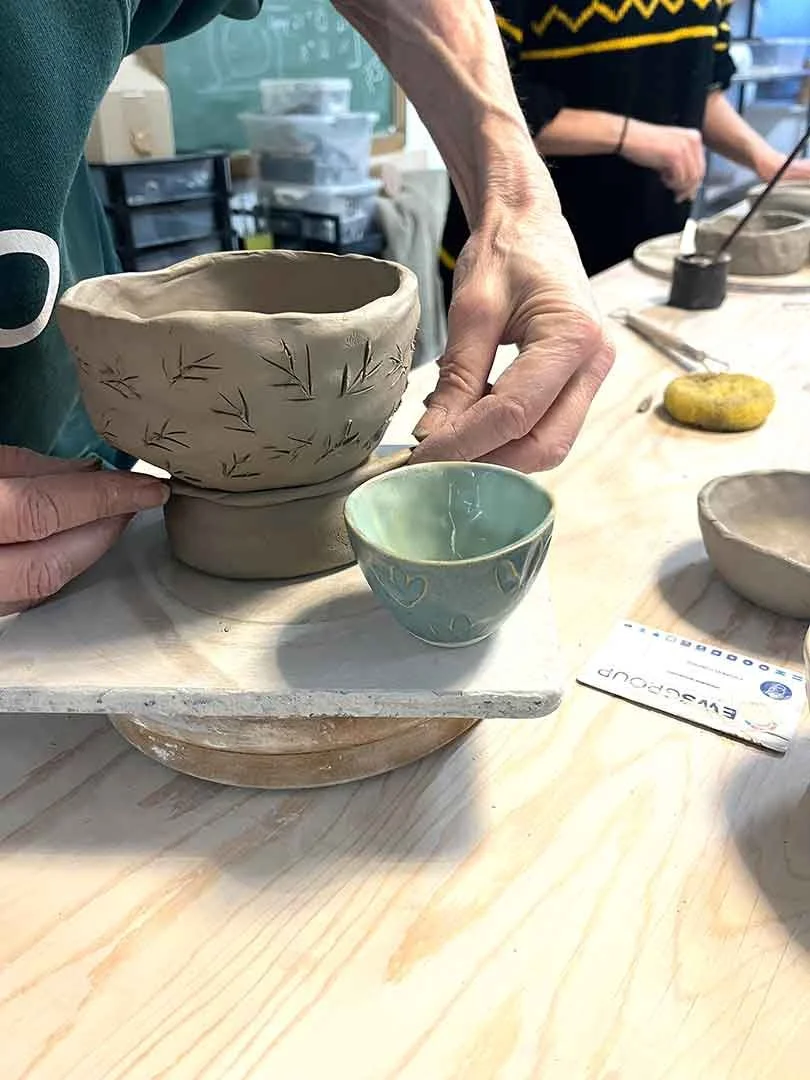 Toch liever met de draaischijf? Kan ook! Dan leer ik jullie tapaskommetjes of koffiemokjes zonder oor maken. Stap voor stap leren jullie kneden, centreren en optrekken op de schijf. Jullie doen dus de opbouw en ik neem de afwerking (afdraaien + glazuren) op mij.