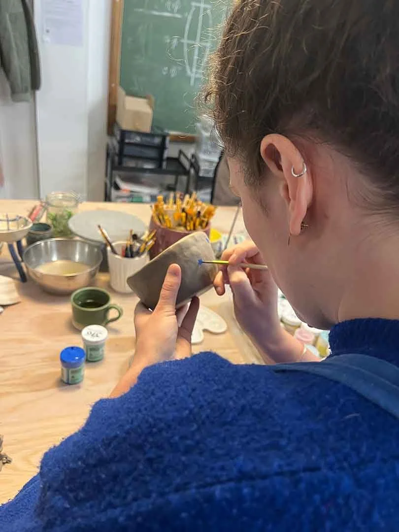 Na het schilderen kunnen de werkjes rustig verder drogen waarna ik ze 2 keer bak en transparant glazuur om ze voedselveilig te maken. Een 4-tal weken later zijn ze klaar en kun je ze komen ophalen bij de studio.